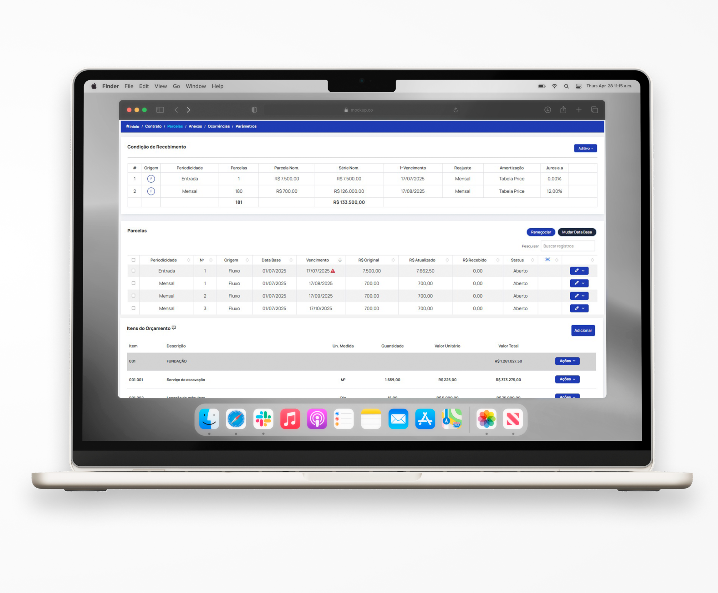 Atualizações em tempo real, de forma automática e 100% confiável, controle e calculo de juros e multa por atraso, juros remuneratório (TP SAC)